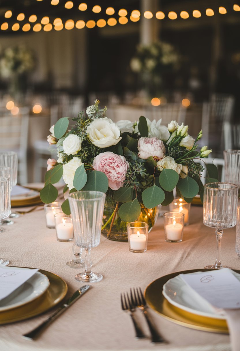 Using simple white flowers keeps the table elegant and bright. It’s a great choice for an October wedding if you want a touch of fall without heavy colors.