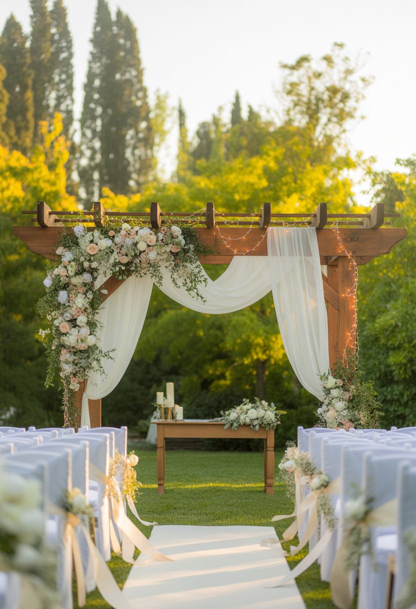 Decorate the arch with flowers or greenery for a splash of color. It helps tie everything together.